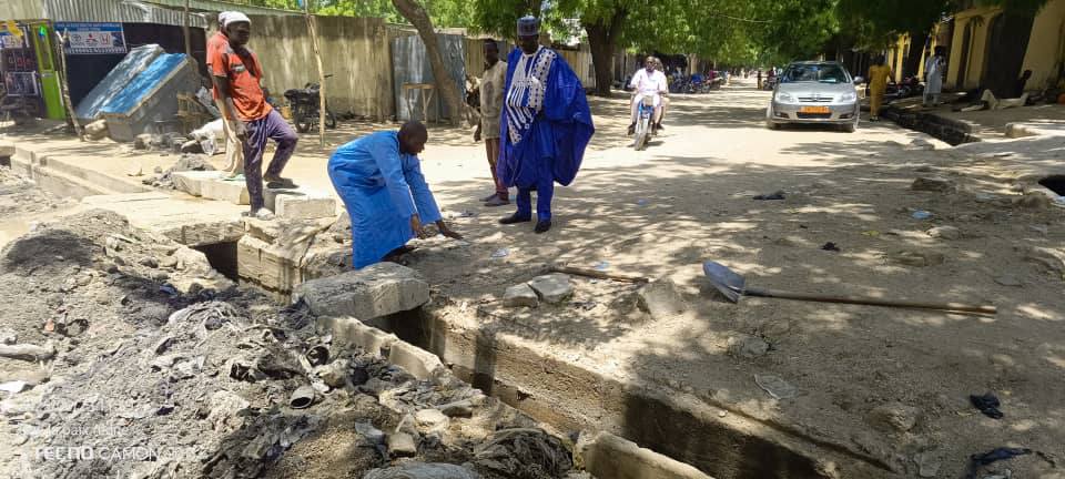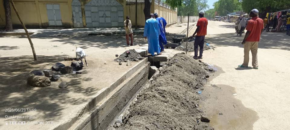Curage et réhabilitation des caniveaux de la ville de Mora. Travaux suivis personnellement par le Maire Chetima HAMIDOU.
